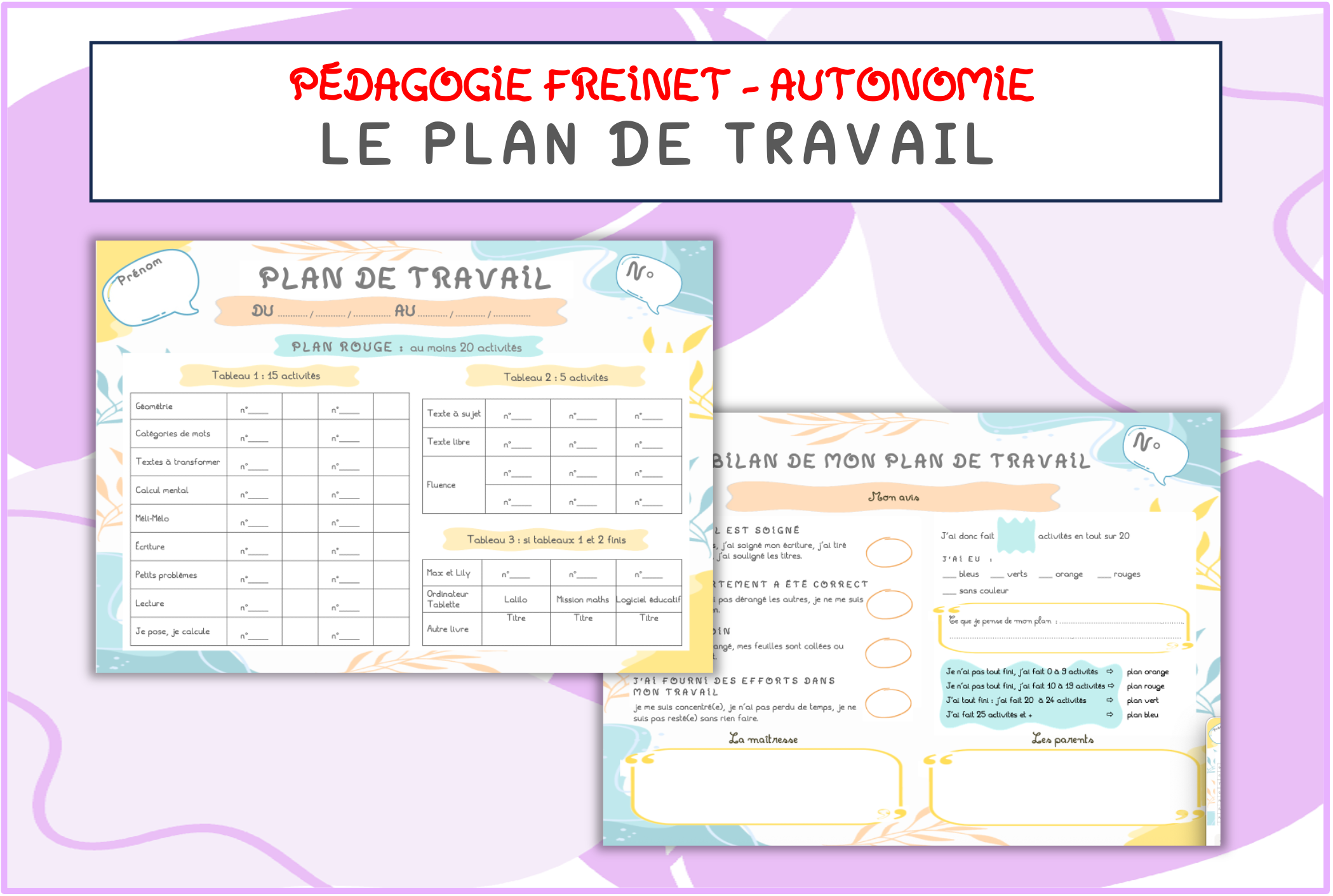 Je vois que tu as un document « Mode d’emploi du plan de travail », j’imagine destiné aux élèves. Est-il possible de l’obtenir stp ? Je ne l’ai pas vu dans les documents à télécharger. J’espère ne pas trop « abuser » mais je suis la recherche du maximum d’informations sur comment mettre cela en place. Cela fait des années que j’en rêve sans savoir comment faire. Mais grâce à toi, j’ai une vision un peu plus précise ce qui me décide à me lancer !