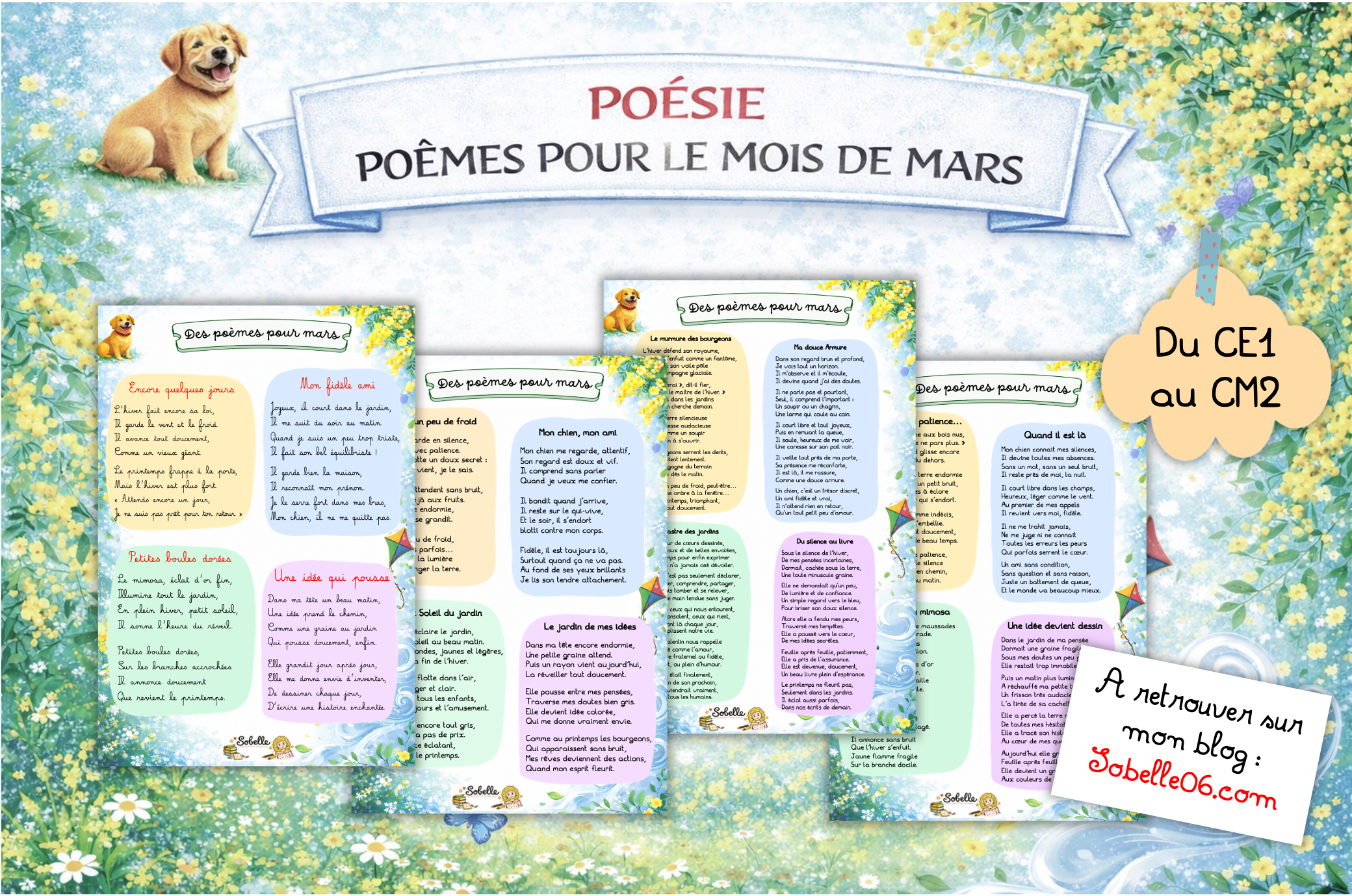Voici une série de poèmes progressifs du CE1 au CM2, autour de 4 thèmes :